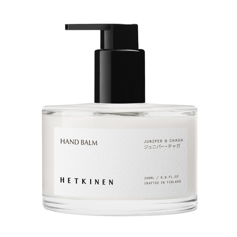 Balzám inspirovaný tichou harmonií finských lesů přináší aromatické spojení jalovce, pryskyřice a čagy, které působí čistým, přírodním a uzemňujícím způsobem. Jemné přírodní oleje spolu s extraktem z čagy podporují obnovu pokožky, posilují její přirozenou bariéru a pomáhají udržet dlouhotrvající hydrataci. Jalovec přináší lehké antibakteriální účinky. Balzám je vhodný nejen na ruce, ale i na obličej a tělo a díky sklěněné lahvičce s pumpičkou se pohodlně dávkuje a působí elegantně.