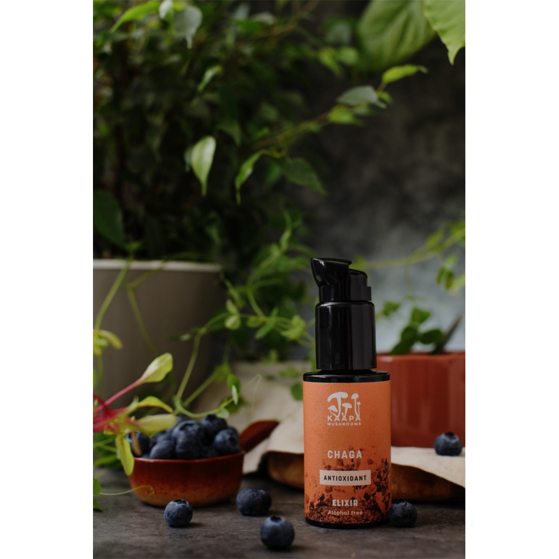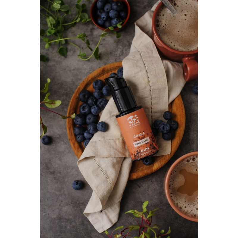 Objevte sílu severské přírody v lahodné formě elixíru z bio extraktu z plodnic finské chagy v kombinaci se severskými borůvkami a vitaminem C. Neobsahuje alkohol, zato borůvky mu dodávají příjemnou chuť a obsahují antioxidanty. Vitamin C pak podporuje maximální účinnost.