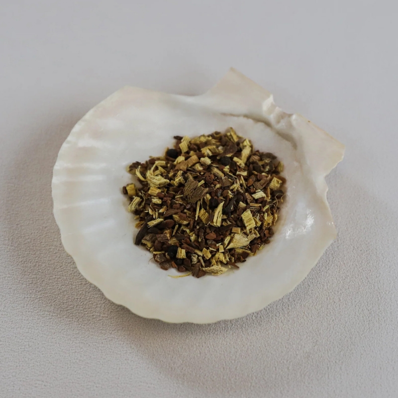 Základ směsi tvoří kořen lékořice, skořice a zázvor, doplněné o hřebíček a jemně pikantní černý pepř. Výsledkem je plná, kořeněná chuť s přirozeně nasládlými a hřejivými tóny, ideální pro večerní rituál nebo klidnou pauzu během dne.