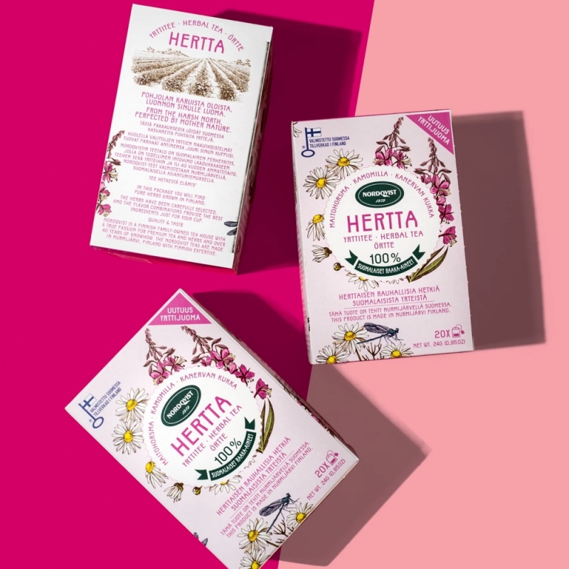 Objevte přirozenou sílu finských bylin s čajem Hertta od finského výrobce Nordqvist. V každém sáčku se snoubí čisté byliny vypěstované výhradně ve Finsku – tam, kde drsné severské podmínky dávají rostlinám jejich jedinečnou sílu a chuť.