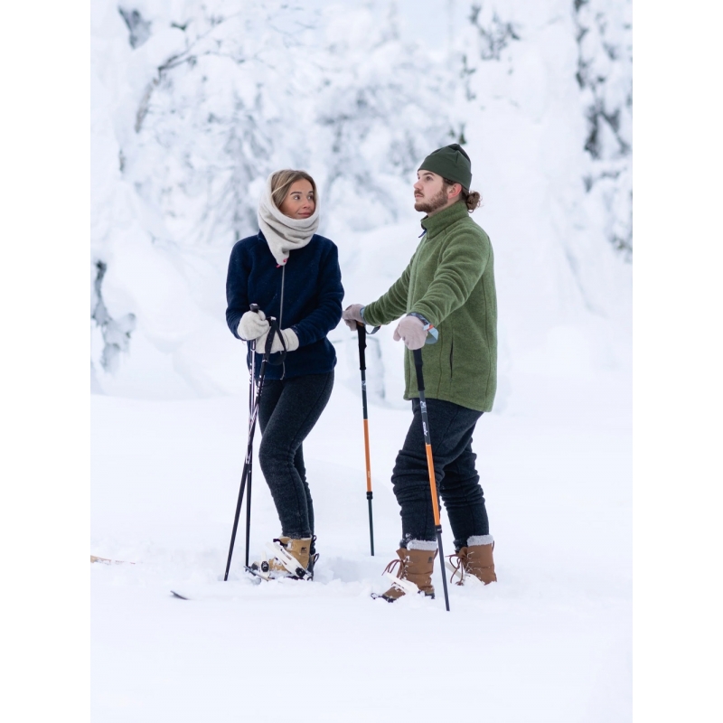 Dámská fleece bunda z čisté organické merino vlny vás spolehlivě zahřeje v zimě a dopřeje příjemný komfort i v přechodných obdobích. Hebký merino fleece je prodyšný, hřejivý a dokonale reguluje teplotu – zahřeje, aniž by přehříval. V chladných dnech poslouží jako ideální mezivrstva, v teplejším počasí zase jako samostatná lehká bunda.