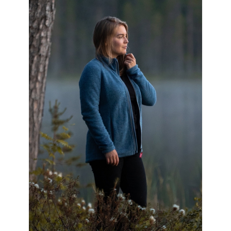 Dámský střih s oboustranným zipem, dvěma praktickými kapsami na zip a dvěma vnitřními kapsami z jemného bio bavlněného úpletu zaručuje pohodlí i funkčnost. Fleece z čisté vlny neobsahuje žádná syntetická vlákna, a tedy ani mikroplasty, a přirozeně odolává ohni. Vlna navíc neutralizuje pachy a často jí stačí pouze vyvětrat – praní není nutné po každém nošení.