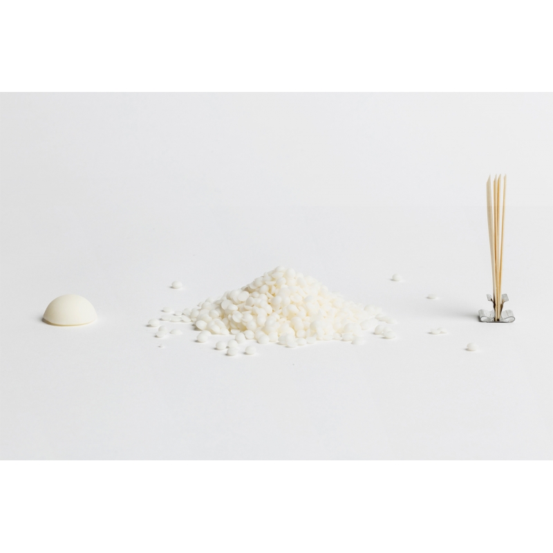 Do sklenice o objemu cca 250 ml dejte polovinu kapslí a nechte je 1 minutu roztavit v mikrovlnce. Poté postavte do svíčky knot a dosypte zbytek kapslí včetně větší vonné kapsle a nechte opět 1 minutu roztavit v mikrovlnce. Pak už jen stačí počkat, než vosk úplně ztuhne a svíčka je hotová.