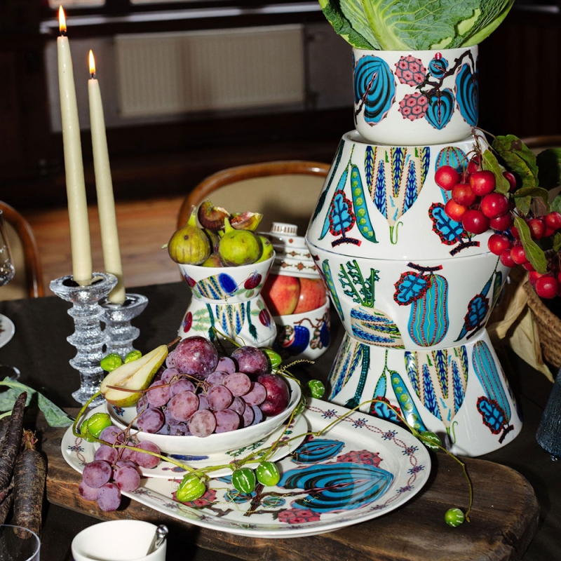 Hluboký porcelánový talíř z kolekce Iittala Taika Sato je ideální na servírování polévek. Taika znamená ve finštině magický a designér Klaus Haapaniemi toto téma zpracoval fantasticky. Příběh oblíbené kolekce od roku 2024 rozvíjí nový motiv Sato, kde Haapaniemi osobitým stylem zachytil úrodu ovoce a zeleniny. Jeho ilustrace inspirují, podněcují vaši představivost a přivedou vás na nové myšlenky.