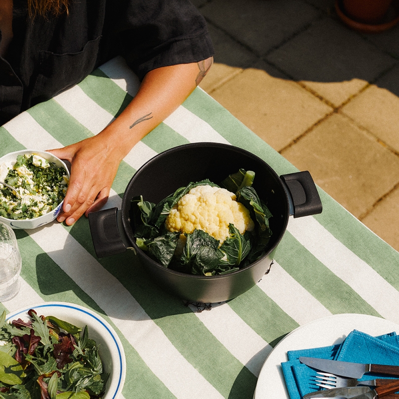 Je možné mýt v myčce na nádobí. Pánev je vhodná pro všechny typy sporáků včetně indukce a také na pečení v troubě až do 150°C.