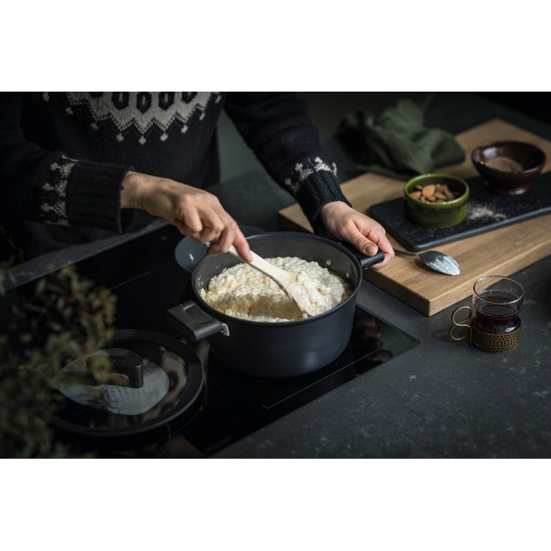 Rukojeti kastrolu zůstávají chladné i během vaření, což zajišťuje bezpečné a pohodlné uchopení. Extra silné dno rovnoměrně distribuuje teplo a díky optimalizovanému jádru Energy Base se kastrol na keramických varných deskách zahřívá až o 50 % rychleji a umožňuje úsporu energie až 30 %. Kastrol je vhodný pro všechny typy sporáků, včetně indukce, a lze jej dokonce do 150°C používat v troubě.