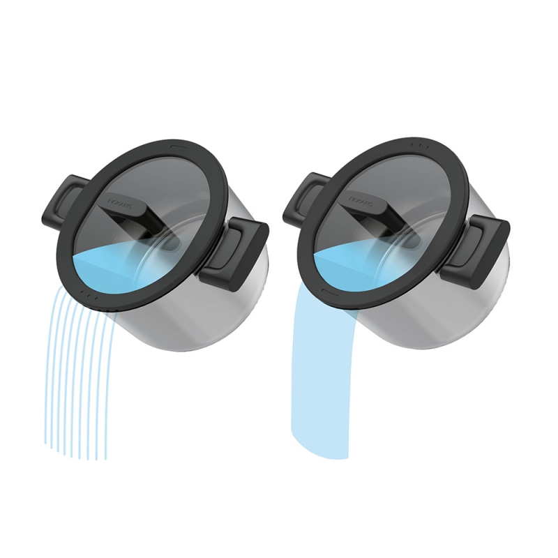 Praktická silikonová poklice je prosklená a vidíte tak, co se v hrnci děje. Navíc je vybavena chytrým systémem pro snadné slévání tekutin - na jedné straně je plně otevřená, na druhé pak s jemnějším sítem třeba cezení rýže nebo drobných těstovin.