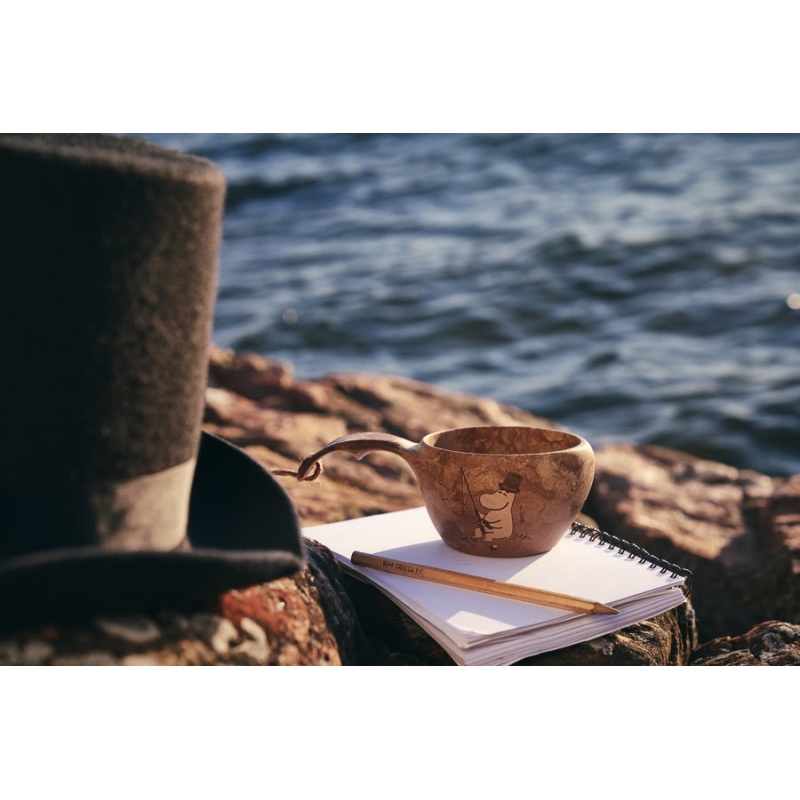 Šálek s motivem tatínka Muminka (Moominpappa) inspirovaný tradiční kuksou laponských Sámů vyšperkoval finský výrobce Kupilka vlastním inovativním materiálem, který spojuje výhody dřeva a kompozitu. Hrnek skvěle padne do ruky, je lehký, odolný a navíc skvěle udrží teplotu nápoje a vy se o něj zároveň nepopálíte. Z hrnečku si tak můžete vychutnávat horké i studené nápoje a je vhodný domů i do přírody na výlety a kempování. Svojí velikostí je stvořený na čaj, kávu nebo třeba vodu z horského pramene.