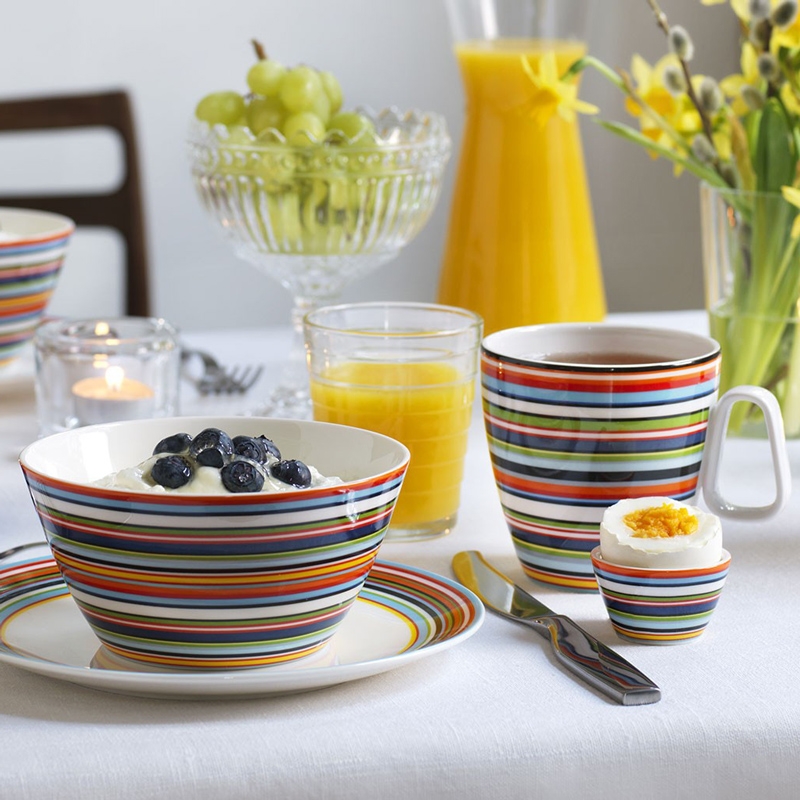Porcelánový hrnek z kolekce Origo vám každý den zlepší náladu. Jednoduchý a přesto výrazný design je díky pestré kombinaci pečlivě sladěných proužků na stole nepřehlédnutelný.