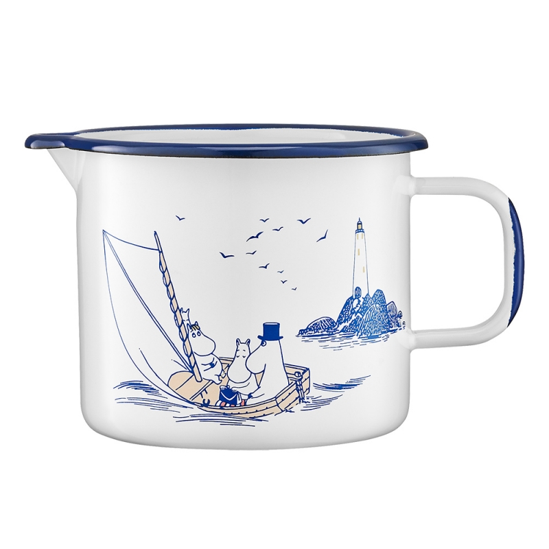 Námořníci Ahoj! Milý smaltovaný kastrol s motivem Sailors od slavné finské autorky Tove Jansson zobrazuje hlavní hrdiny na loďce a maják. Ouško a okraj jsou stylově dozdobeny modrou barvou. Krásný kastrol, ve kterém můžete vařit dětské kaše, ohřívat kakao a připravovat všelijaké dobroty.