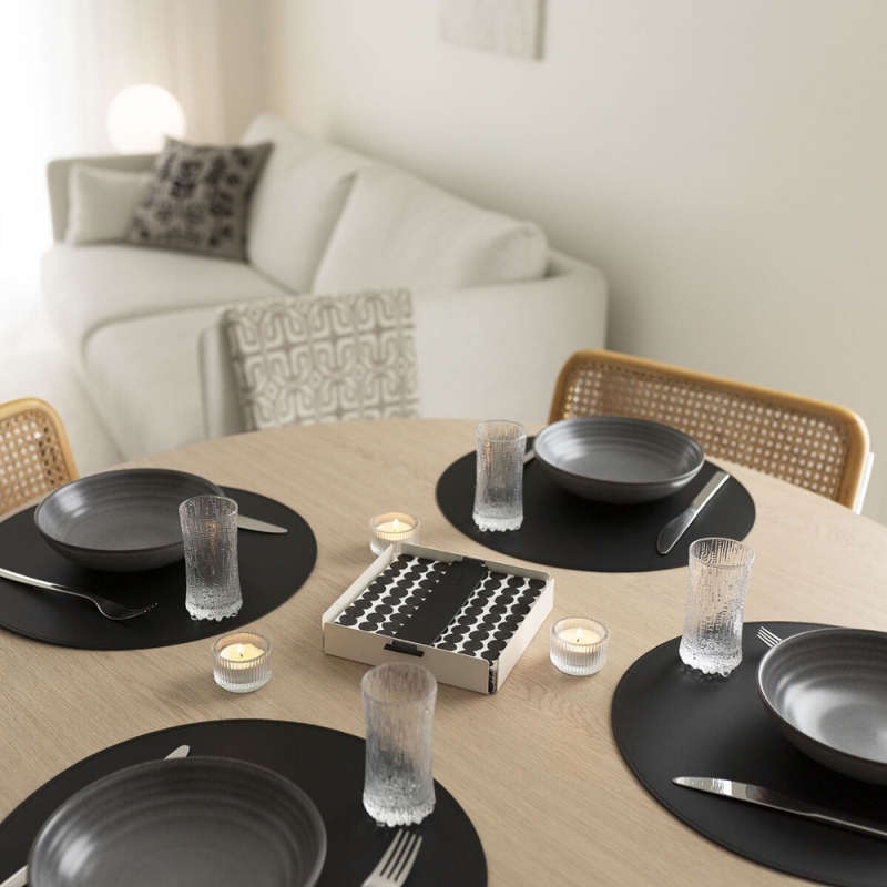 Kvalitní zpracování s decentním prošíváním podtrhuje jednoduchý, seversky čistý design, který se snadno doladí moderní i tradiční interiéry. Prostírání se vyrábí přímo ve Finsku.