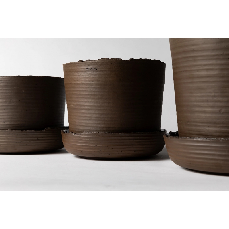Keramický květináč Soil z manufaktury Vaidava symbolizuje sílu a nespoutanost země. Nerovné, neopracované okraje a matný povrch bez glazury odráží ruce keramického mistra. Květináč je vyrobený z pověstné červené lotyšské hlíny s příměsí manganu, které dohromady dávají hnědý odstín úrodné půdy a krásně ladí se zasazenou rostlinou. Krásný kousek, který přinese do prostoru rafinovanou dávku surového designu.
