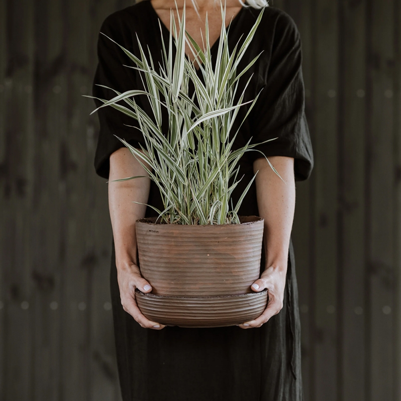 Květináč je svojí velikostí ideální pro střední a velké rostliny a hodí se na široký nízký parapet, komodu nebo podstavec. Vejde se do něj i monstera s bohatou korunou velkých listů nebo statný kaučukovník. Hliněný květináč dýchá v souladu s kořeny rostliny a zajistí jim tak přísun kyslíku, který je důležitý pro vývoj zdravého kořenového systému. Pórovitý materiál květináče také umožňuje snadné odpařování přebytečné vlhkosti z půdy.