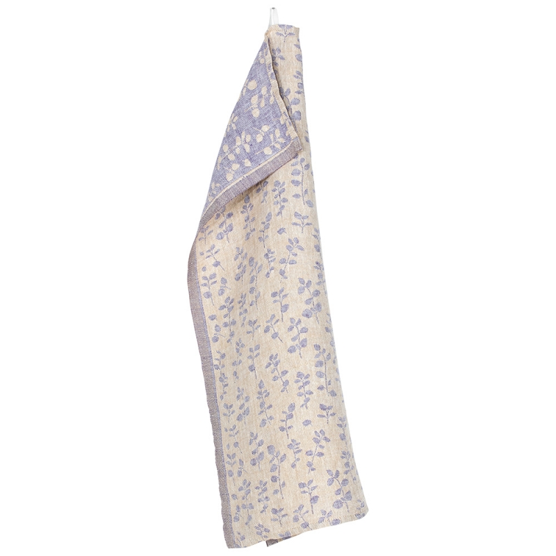 Kuchyňská utěrka utkaná ze 100% lnu vypěstovaného v Normandii nese motiv Meirami (finsky majoránka) v zlato levandulové kombinaci. Design oslavuje přírodní krásu bylinek a přináší do domácnosti šarm, vůni a harmonii. Len rychle schne a je tak praktický na každodenní práci v kuchyni.