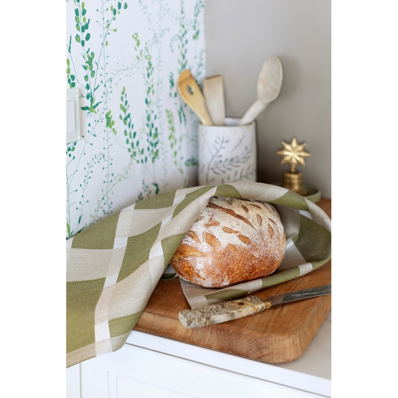 Lněná utěrka Punos 46x70, len-olivově zelená
