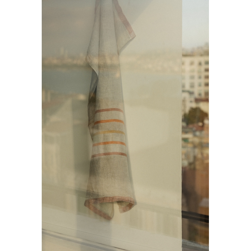 Ručník Virta je tkaný ze 100% lnu a zaujme klidnou, přírodou inspirovanou barevností. Zemité tóny v teplých odstínech působí přirozeně a nenuceně.