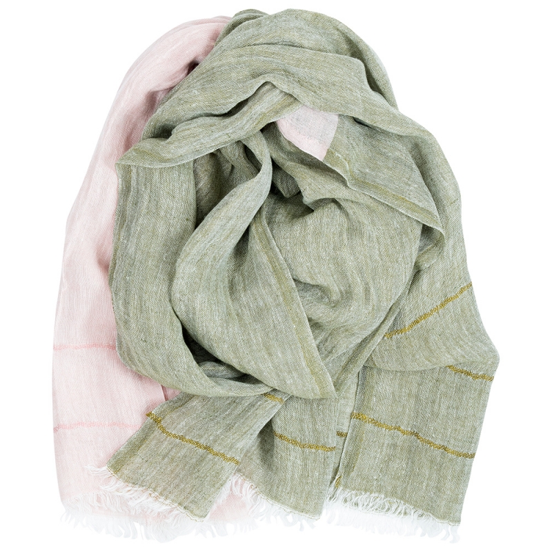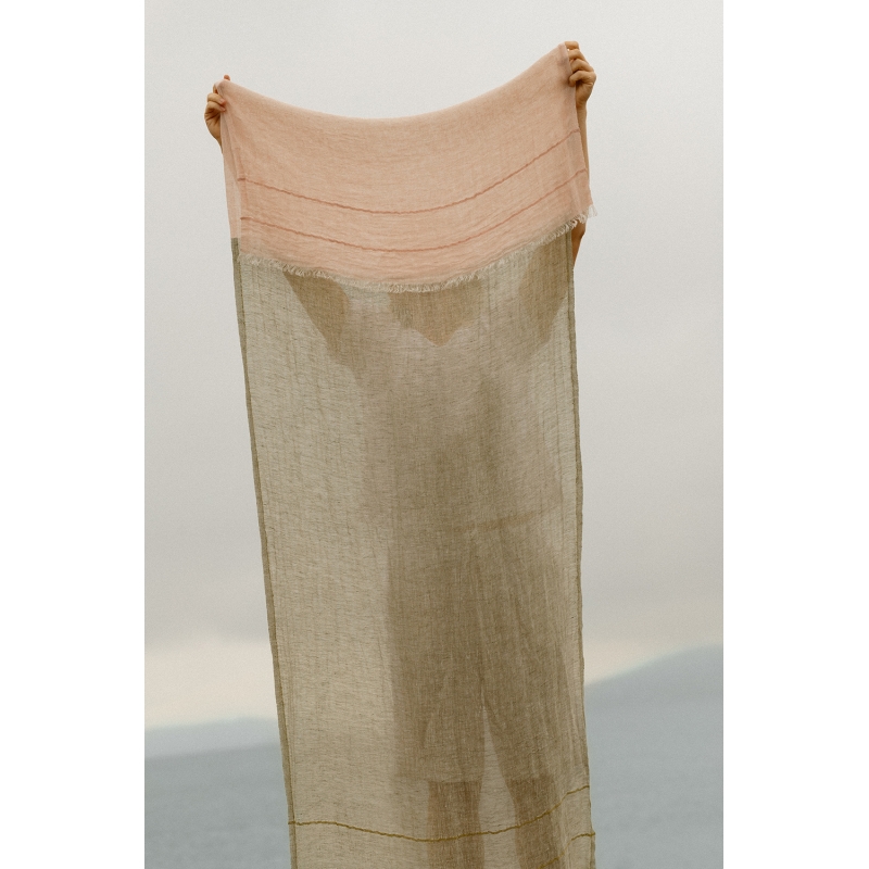 Lněný šál Tsavo vás okouzlí jedinečnou krásou 100% lnu. Design dovádí k dokonalosti tenké linky v lehce odlišném odstínu. Šál upletený z prvotřídního lnu je velmi příjemný na dotyk a zároveň vás údrží v teple.
