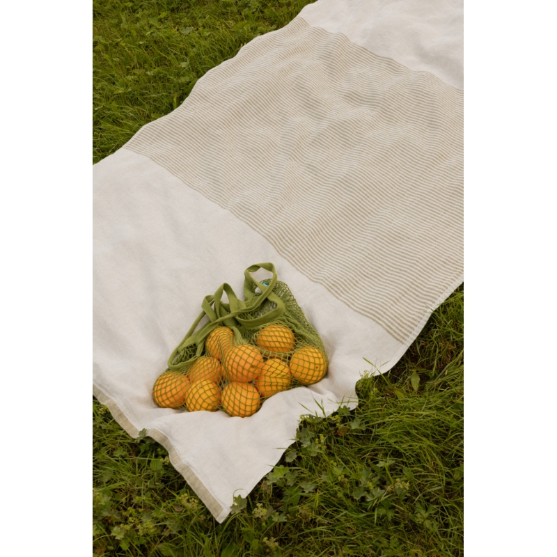 Přírodní lněný odstín s proužky vytváří nadčasový vzhled, který se hodí jak do moderní domácnosti, tak na chalupu či letní terasu. Díky lehkosti materiálu je ubrus Kaisla velmi univerzální – skvěle funguje nejen na stole, ale i jako lehčí letní přehoz nebo deka.