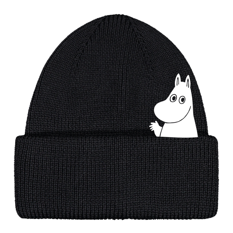 Merino čepice Moomin Hello there, černá / reflexní