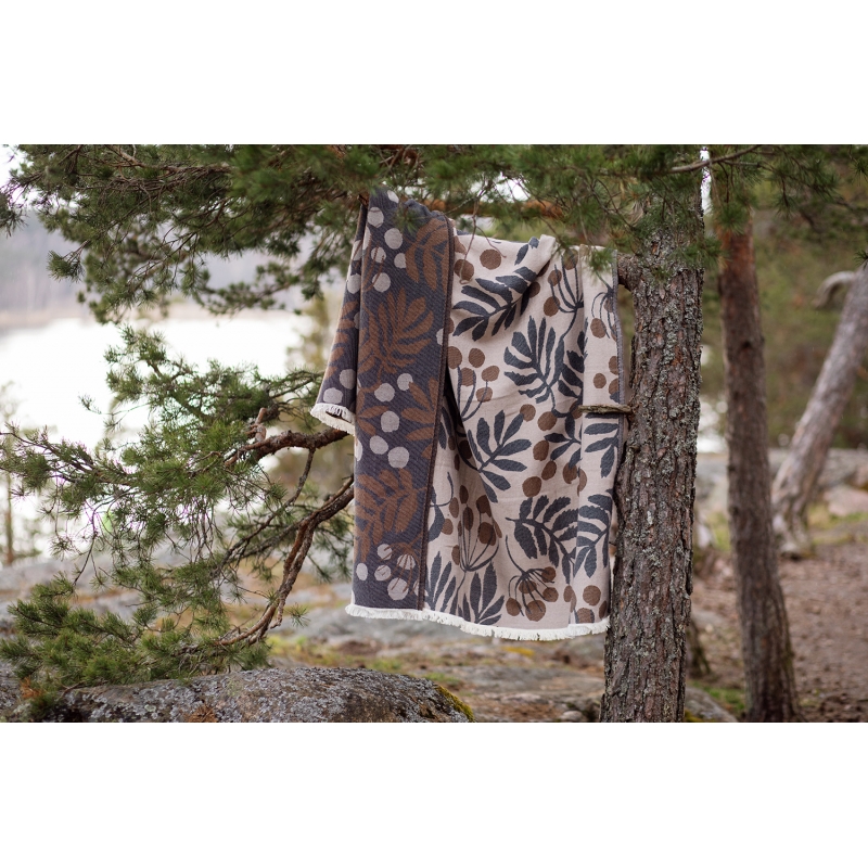 Exkluzivní deka Pihapuu je inspirována  stromem, který nese svoji úrodu. Deka je tkaná z prvotřídní australské merino vlny a biobavlny. Je příjemná na dotyk a výborně vás zahřeje po celý rok.