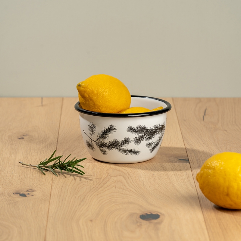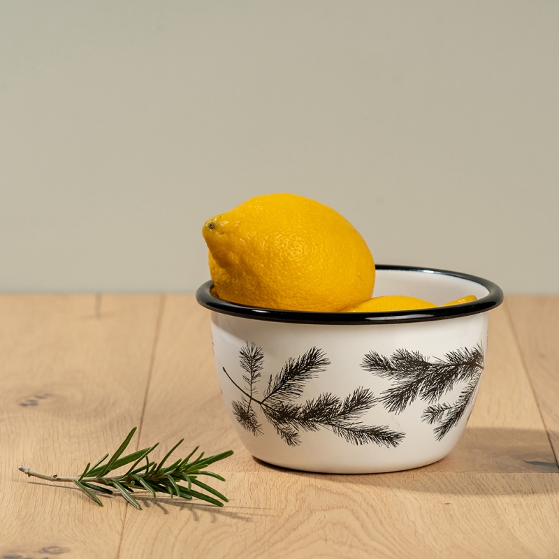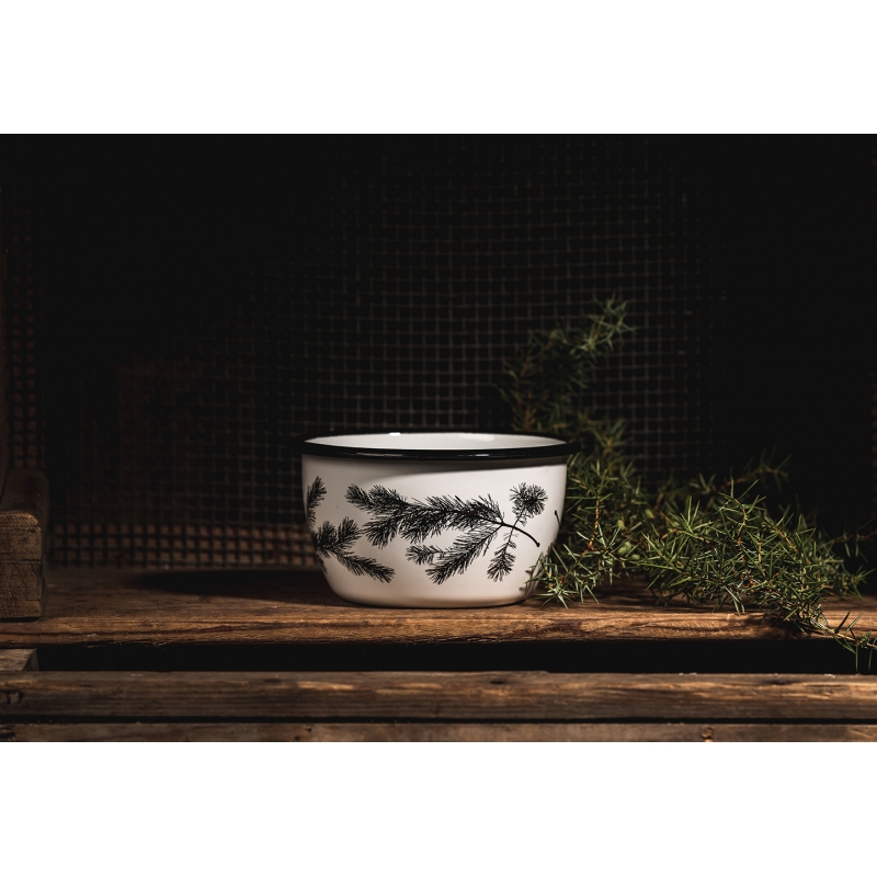 Smaltovaná miska z kolekce Nordic nese po obvodu motiv borovicových větviček. Miska je ideální na servírování ranních cereálií, krupičné kaše, kompotů nebo třeba na oříšky při večerním posezení. Krásný dárek pro všechny milovníky přírody.