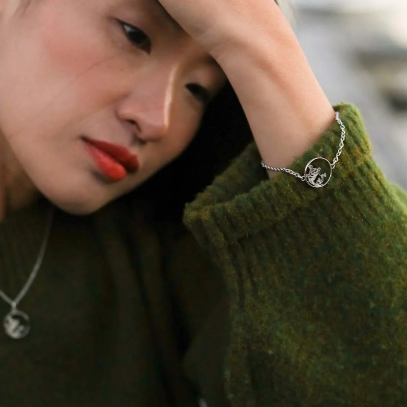 Elegantní, milý stříbrný náramek zdobí jemný přívěsek s postavičkou malé Mii, která je zlobivá, odvážná a sebevědomá. Minimalistický design náramku kombinuje severskou čistotu s hravým detailem, který potěší všechny fanoušky příběhů o Mumincích od Tove Jansson. Vyrábí se s důrazem na ruční zpracování a udržitelnost přímo ve finském Kuopiu v dílnách šperkařského výrobce Lumoava, který se pyšní titulem nejseverněji položeného šperkařství na světe. Nastavitelná délka zajišťuje pohodlné nošení a univerzální velikost. Náramek je dodáván v elegantní dárkové krabičce – připravený potěšit vás nebo vaše blízké.