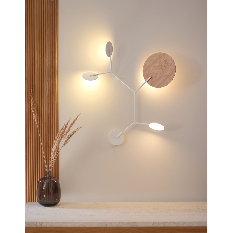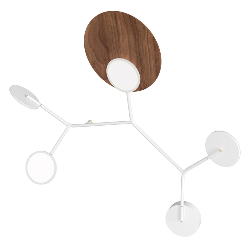 Tato varianta lampy Wall5 má jeden panel podložený větším diskem, který může mít dekor z kvalitního dubového nebo ořechového dřeva nebo čistě bílý odstín jako zbytek svítidla. Před vložením do košíku prosím vyberte požadovanou variantu.