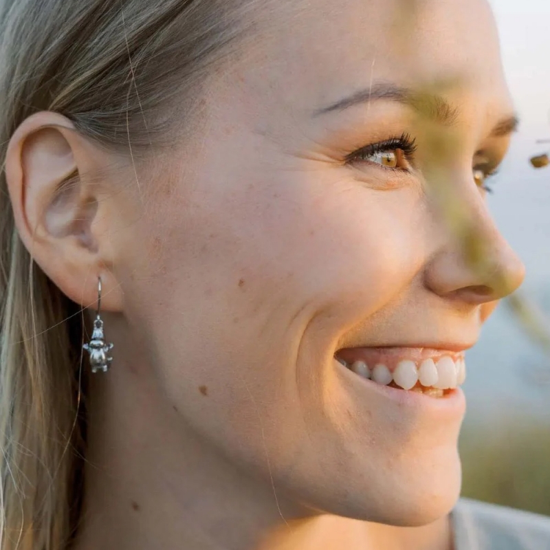 Jemné stříbrné náušnice s motivem Mumínka potěší každého, kdo si v srdci nese lásku k příběhům z údolí Mumínků. Elegantní silueta postavičky působí lehce a přirozeně a je ideální pro každodenní nošení i výjimečné chvíle. Náušnice pochází z licencované kolekce Lumoava x Moomin a jsou vyrobeny ručně ve finském Kuopiu ze 100% recyklovaného stříbra. Jejich minimalistický design spojuje severskou čistotu s hravým detailem a nadčasovou nostalgií. Dodávají se v dárkové krabičce a jsou krásným dárkem pro ty, které máte rádi.