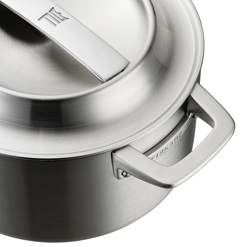 Robustní nerezový hrnec Norden představuje dokonalé spojení tradičního řemeslného zpracování a nadčasového finského designu. Hliníkové jádro mezi vnější a vnitřní vrstvou z nerezové oceli zajišťuje rovnoměrný ohřev na všech typech sporáků. Výrazný design víka je inspirován tradičním severským nádobím a padne dobře do ruky.
