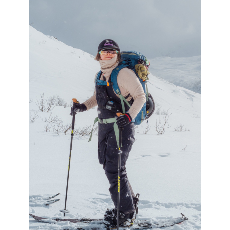 Promyšlené detaily zvyšují komfort při pohybu: vysoký límec se zipem ke krku je doplněn ochrannou légou proti větru, ramenní švy jsou navrženy tak, aby netlačily ani při nošení batohu, a prodloužený zadní díl chrání bedra před chladem. Dlouhé rukávy jsou zakončeny praktickými otvory na palec, které pomáhají udržet rukávy na místě a zahřívají hřbety rukou.