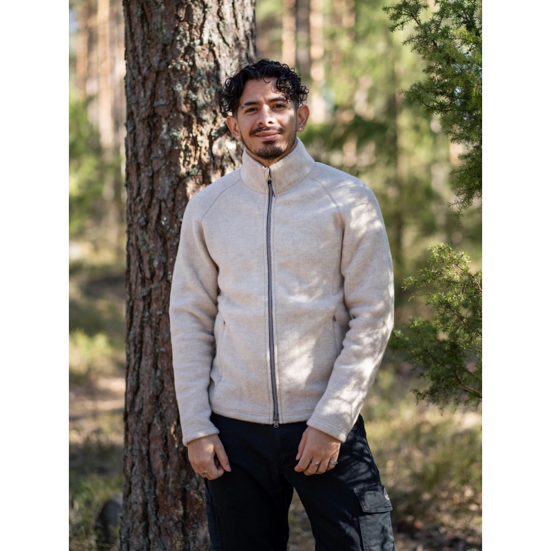 Praktický pánský střih s oboustranným zipem, dvěma vnějšími kapsami na zip a dvěma vnitřními kapsami z jemného bio bavlněného úpletu poskytuje dostatek místa na drobnosti i pohodlí při nošení. Fleece z čisté merino vlny neobsahuje žádná syntetická vlákna, a tedy ani mikroplasty. Vlna přirozeně odolává ohni, reguluje teplotu a hřeje i ve vlhku. Navíc neutralizuje pachy – často stačí jen vyvětrat, praní není nutné po každém použití.