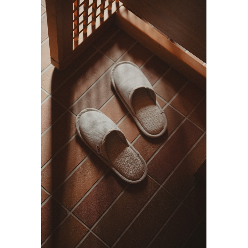 Kvalitní pantofle do sauny a koupelny Onni zachovají vaše nohy v teple a suchu. Len a biobavlna zároveň jemně masírují vaši pokožku a dodávají chodidlům správnou dávku regenerace.