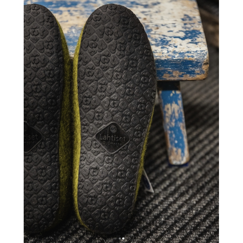 Ručně vyráběné finské plstěné pantofle Lahtiset s gumovou podrážkou jsou ideální volbou pro pohodlné nošení doma, na chalupě i v kanceláři. Díky nízkému střihu se snadno nazouvají a vyzouvají.