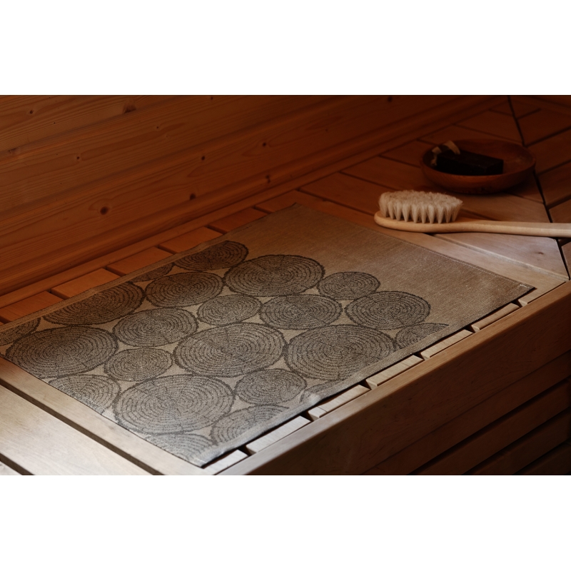 Krátká podložka na lavici do sauny zvýší vaše pohodlí a zlepší hygienu při saunování. Je vhodná nejen na sezení, ale také jako podložka pod nohy ve veřejné sauně. Nadčasový decentní motiv letokruhů Motti působí uklidňujícím dojmem a bude krásným doplňkem při vaší relaxaci.