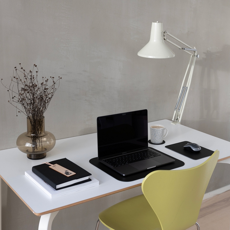 Podložku můžete kombinovat s dalšími doplňky z recyklované kůže finského výrobce Miiko. Doporučujeme například prostírání, které skvěle poslouží jako podložka pod notebook a vytvoříte tak funkční a stylový celek na pracovní stůl. Podložka pod myš je vyrobená ve Finsku.