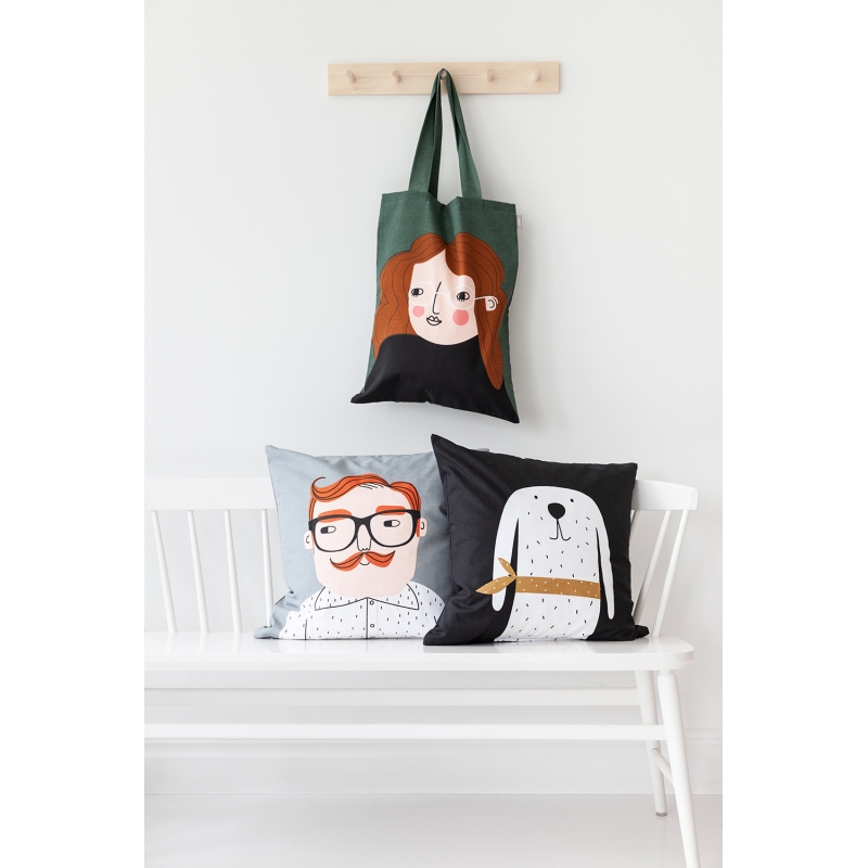 Bavlněný povlak na polštář z kolekce Kompisar (švédsky přátelé) zdobí pes Bosse. Pokud nemáte chuť na dlouhé procházky, bude to parťák právě pro vás. Bosse je totiž nejšťastnější, když leží na pohovce. Kolekci s celou řadou rozličných charakterů navrhla švédská designérka Isabelle Norman Sällström a vy si tak můžete domů přinést kopu dobrých přátel, kteří vám vždy zlepší náladu. Polštář je ručně potištěný a zapíná se na zip.