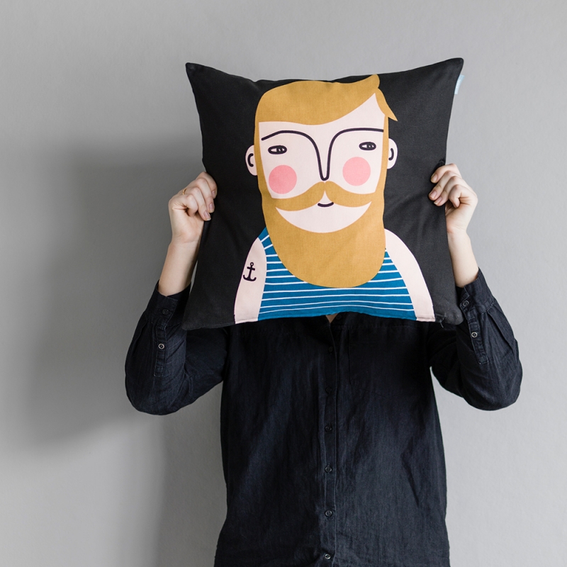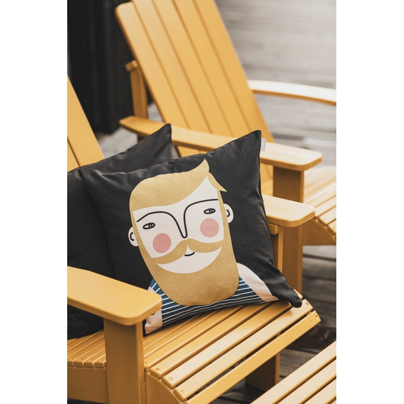 Bavlněný povlak na polštář z kolekce Kompisar (švédsky přátelé) zdobí Frank. Je to sympatický kluk s velkým srdcem. Vždy bude chtít být vaším přítelem, v dobrém i ve zlém. Kolekci s celou řadou rozličných tváří navrhla švédská designérka Isabelle Norman Sällström a vy si tak můžete domů přinést kopu dobrých přátel, kteří vám vždy zlepší náladu. Polštář je ručně potištěný a zapíná se na zip.