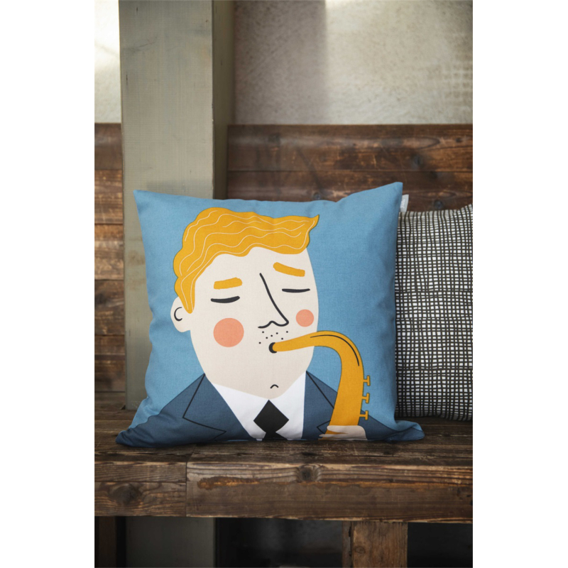 Bavlněný povlak na polštář z kolekce Kompisar (švédsky přátelé) zdobí charismatický Harry. Harry vás dokáže okouzlit svými jazzovými melodiemi i osobním šarmem. Za jeho přitažlivým vzhledem se ale skrývá člověk, který miluje dlouhé večery plné rozhovorů o životě – i když většinu prostoru si často vezme jeho saxofon. Kolekci s celou řadou rozličných tváří navrhla švédská designérka Isabelle Norman Sällström a vy si tak můžete domů přinést kopu dobrých přátel, kteří vám vždy zlepší náladu. Polštář je ručně potištěný a zapíná se na zip.