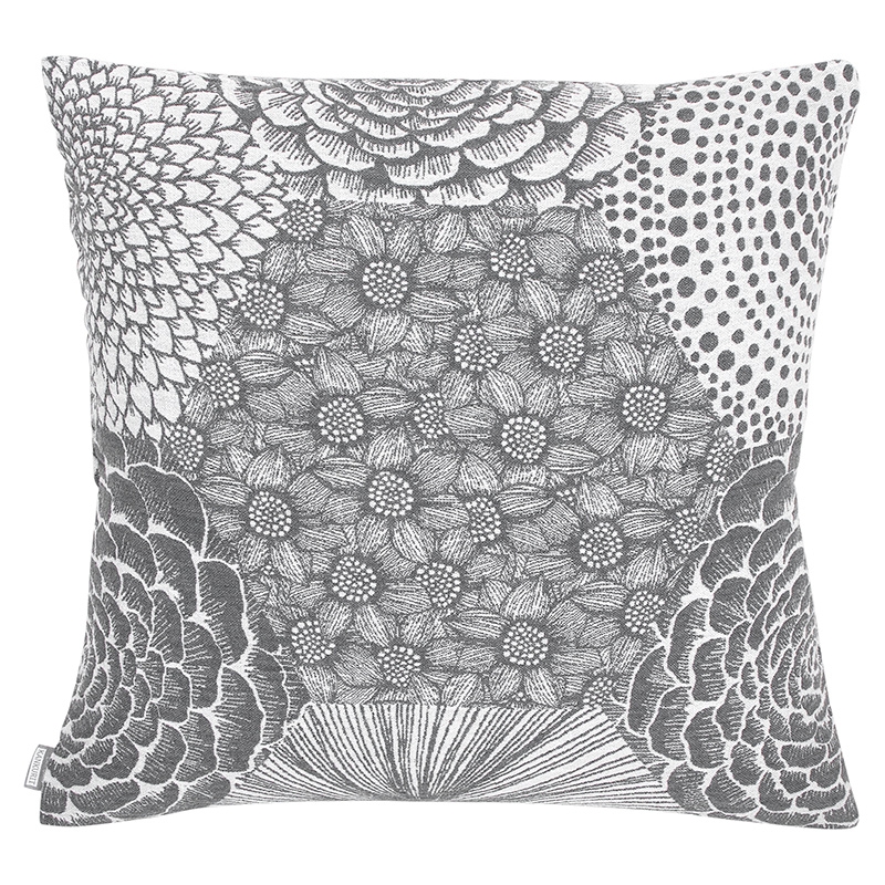 Povlak na polštář Ruut s velmi zajímavým květinovým vzorem v šedoobílém provedení vás zaujme na první pohled. Jednoduchý vzor v sobě skrývá množství detailů, které nakonec vytváří harmonický, oku lahodící celek.