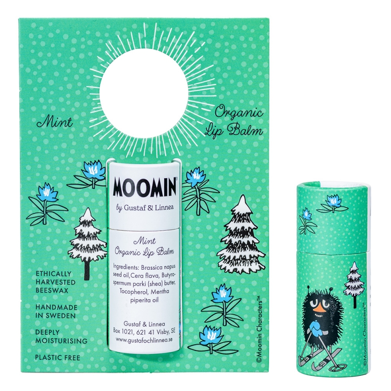 Přírodní balzám na rty s motivem Stinkyho z oblíbených pohádek o Mumincích vznikl ve švédské manufaktuře Gustaf och Linnea, kde spojují jemnou péči o pokožku s respektem k přírodě.