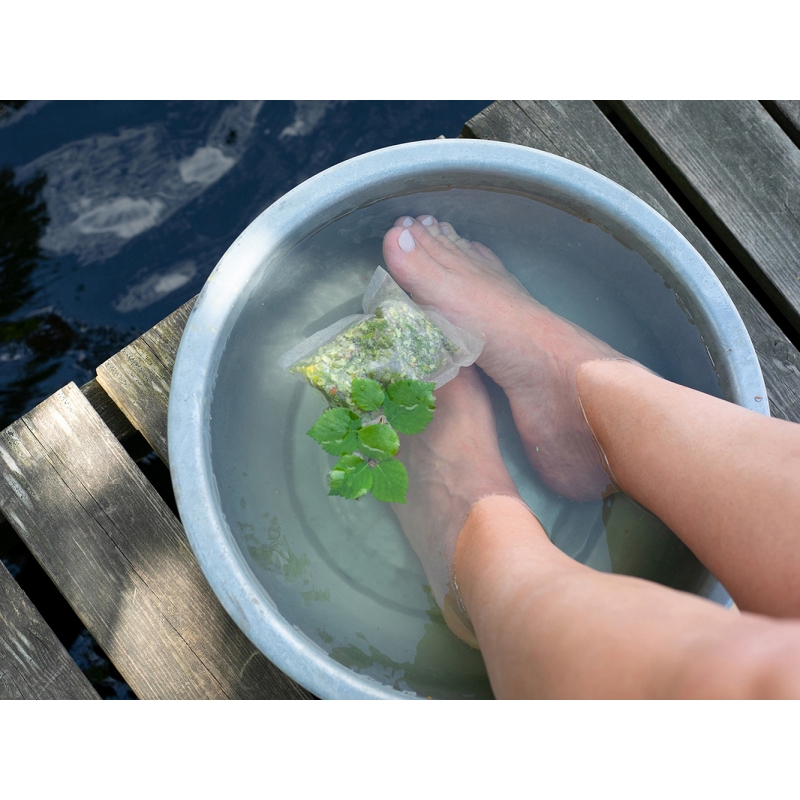 Vložte sáček do horké vody. Nechte louhovat přibližně 20 minut a následně obsah nalejte do koupele. Můžete použít ke koupeli nohou, rukou i celého těla.