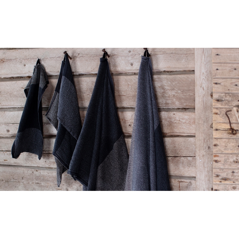 Složení ze lnu, tenclu a bavlny řadí ručník Terva mezi oblíbené pomocníky ve vaší koupelně. Je na dotyk jemnější, rychle schne a má vynikající savost. Ručník Terva si zkrátka zamilujete hned při prvním použití. Hodí se nejen jako klasická osuška, ale poslouží i jako stylový kilt v sauně. Tato barevná kombinace je tkaná z nití v černém, šedém a přírodním odstínu lnu.