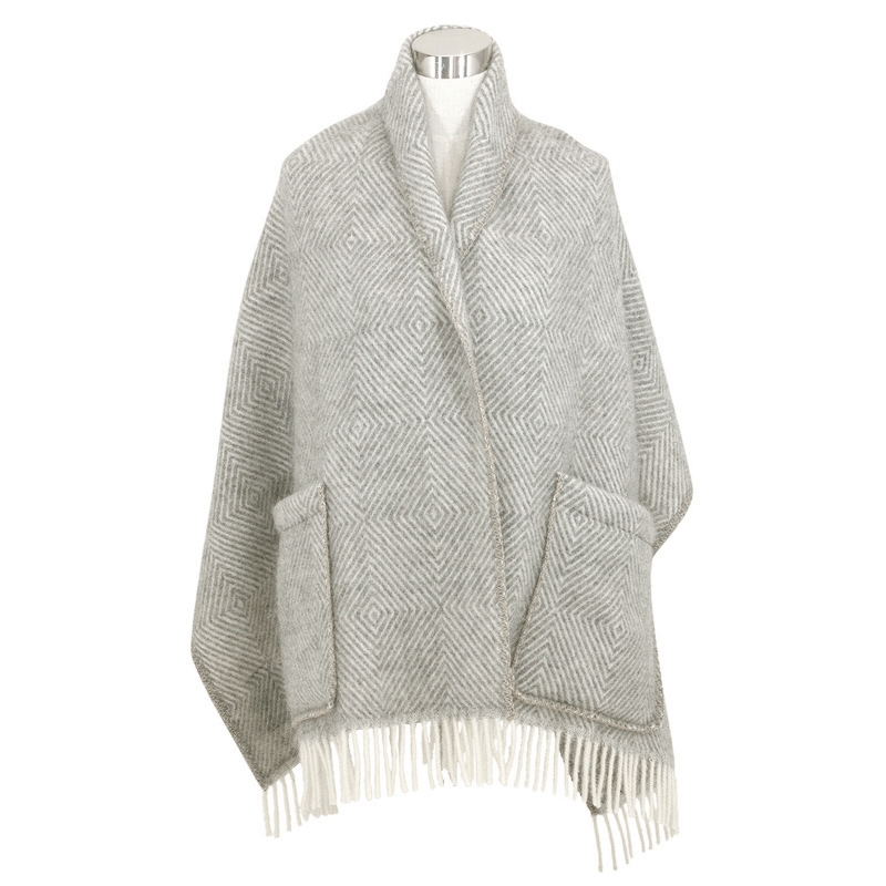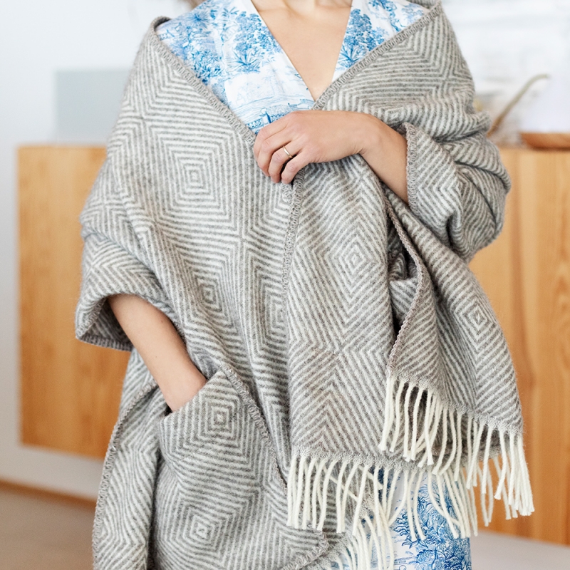 Vlněný šál Maria je utkaný ze 100% čisté střižní vlny, která vás zahřeje vždy, když bude potřeba. Jemný motiv je elegantní a pasuje jak ženám, tak i mužům. Šál dovádí k dokonalosti jemné třásně. Praktické kapsy navíc přináší možnost si do nich uschovat potřebné drobnosti a také zahřát ruce.