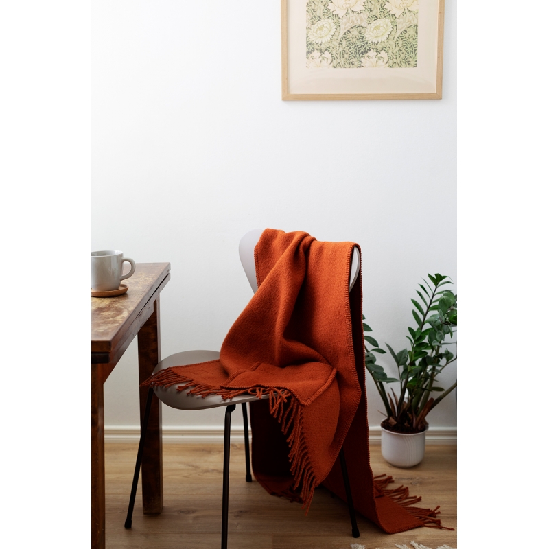Vlněný šál Uni je utkaný ze 100% čisté střižní vlny, která vás zahřeje vždy, když bude potřeba. Skořicově hnědý odstín je elegantní a šál dovádí k dokonalosti jemné třásně. Praktické kapsy navíc přináší možnost si do nich uschovat potřebné drobnosti a také zahřát ruce.