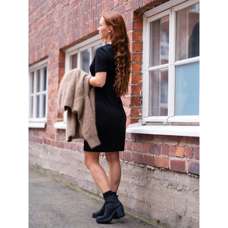Dopřejte si pocit čistého luxusu – dámské lehké šaty s krátkým rukávem ze 100% organického hedvábí od finské značky Ruskovilla jsou jemné, prodyšné a ideální i pro citlivou pokožku. Díky své přirozené schopnosti regulovat teplotu vás v létě příjemně ochladí a v zimě zahřejí.