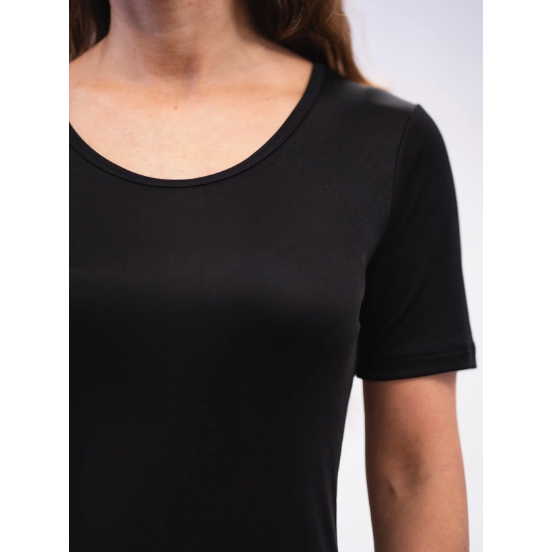 Hebký, jemně lesklý úplet je neprůhledný, takže se skvěle hodí jako spodní vrstva pod šaty, ale i jako noční košilka nebo stylové letní šaty, které můžete nosit samostatně nebo kombinovat se sakem nebo sukní. Jako spodní vrstva pomáhá šatům krásně splývat, zabraňuje jejich vyhrnování nebo lepení na tělo a zároveň vyhlazuje siluetu.