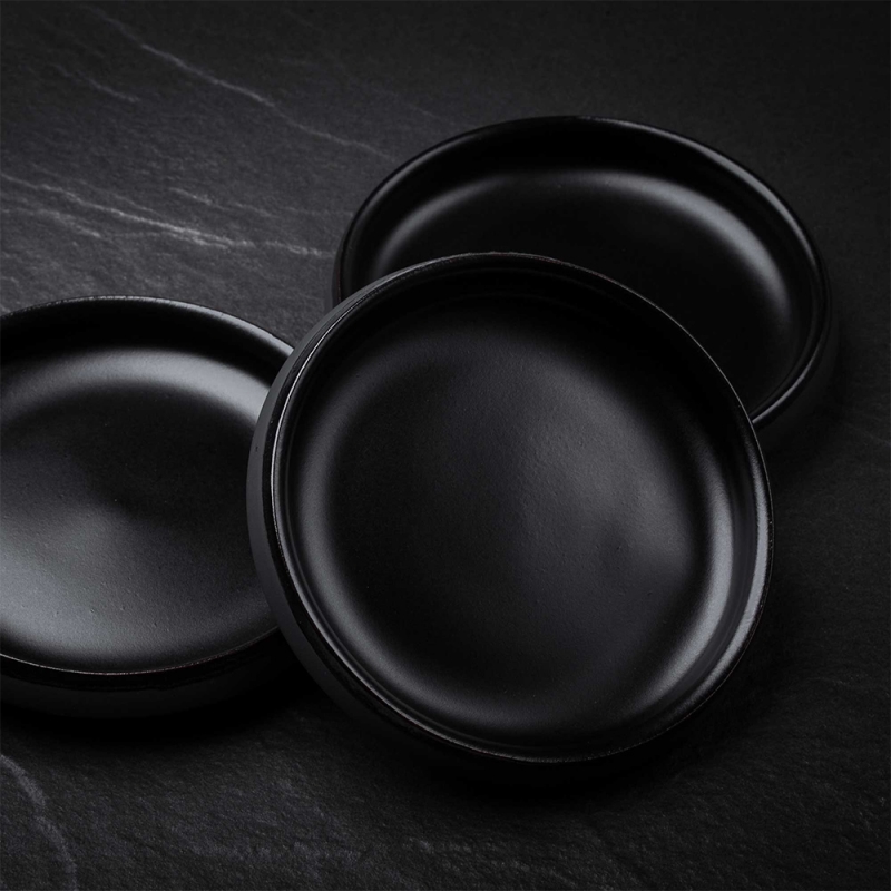 Set tří keramických talířů Eclipse v elegantním matném černém odstínu bude tím pravým pro vaše malé laskominy, snacky, dezerty a předkrmy.