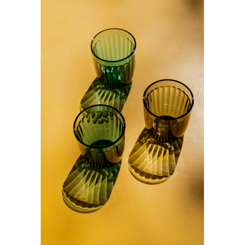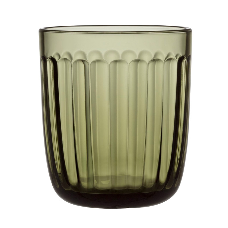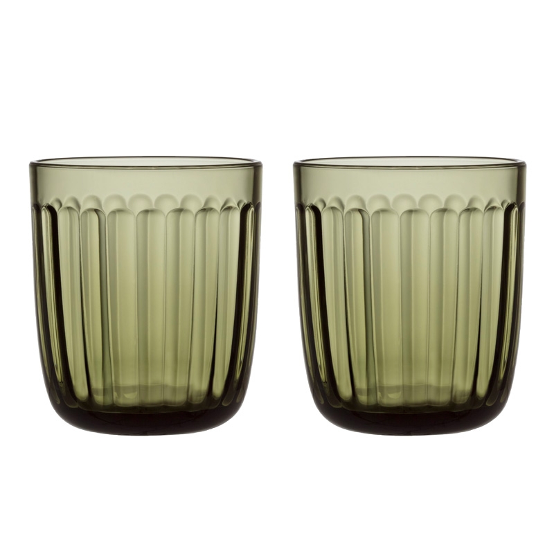 Zelené sklenice z kolekce Raami (ve finštině „rám“) v seversky jednoduchém, ale promyšleném stylu.