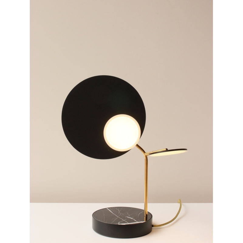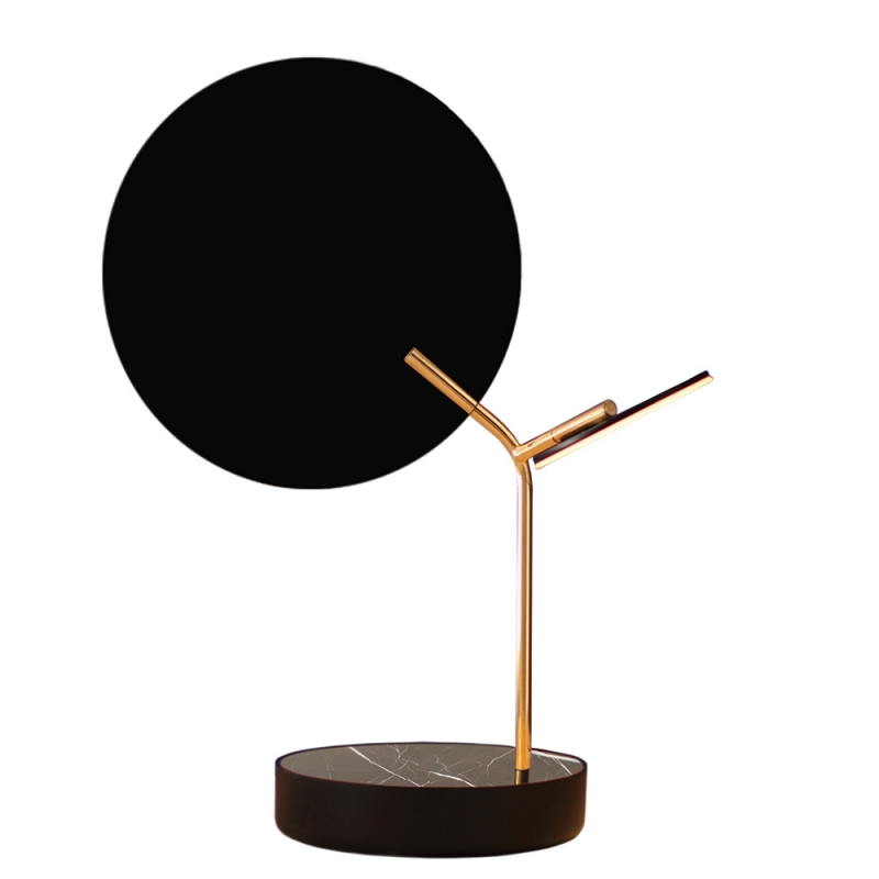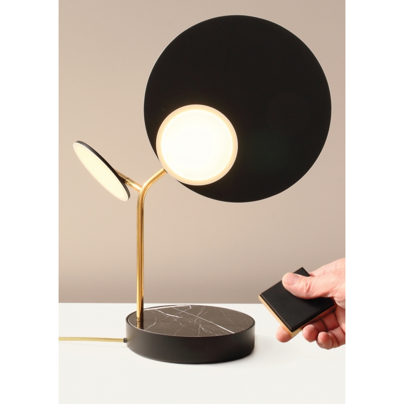 Otočný, nastavitelný panel spolu s masivní mramorovou základnou dodávají lampě přirozenou eleganci a stabilitu, zatímco rám potažený 24karátovým zlatem vnáší do interiéru jemný nádech prestiže a sofistikovaného luxusu. Díky možnosti otáčení obou LED panelů si snadno vytvoříte atmosféru od jemného, tlumeného světla až po intenzivnější nasvícení.