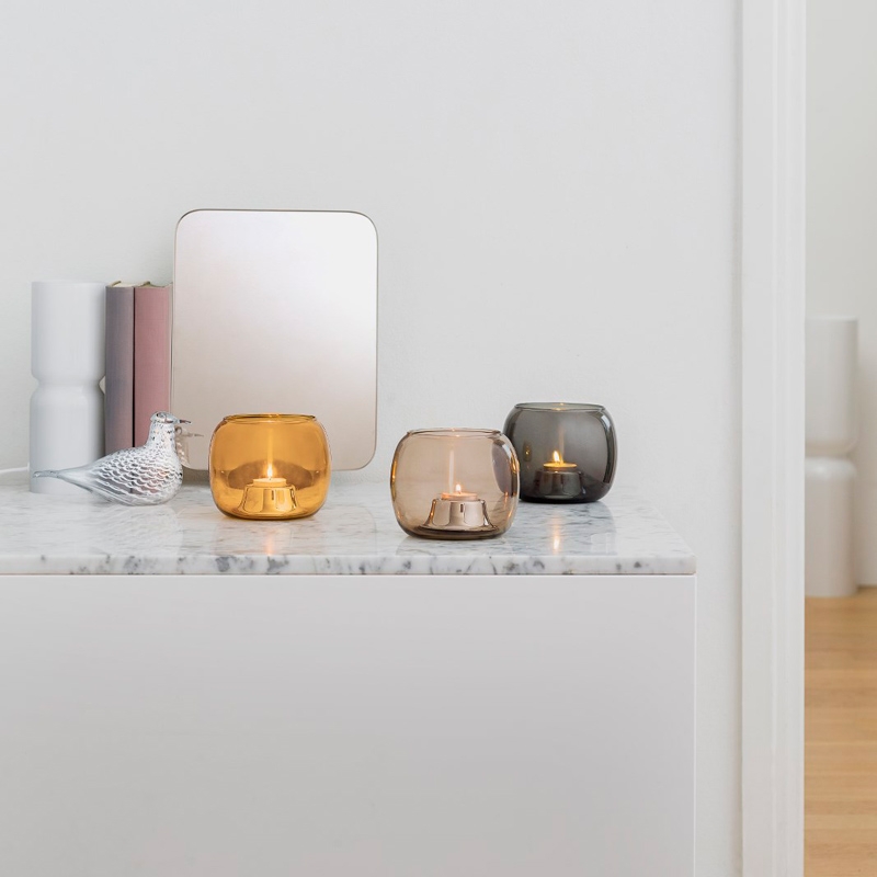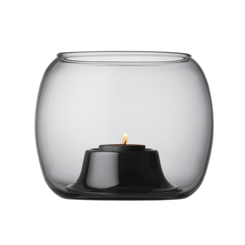 Velký skleněný svícen na čajovou svíčku Kaasa si vás získá rozměrným stínidlem, které rozptyluje příjemné světlo. Ručně foukané sklo je zabarvené kvalitním pigmentem, který vytváří jednolitý šedý odstín.